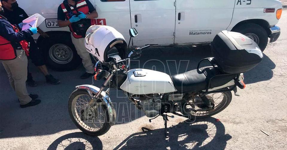 Matamoros, Tamaulipas.- Un motociclista, empleado de la Pepsi, resultó lesionado tras derrapar luego de que fue impactado por un vehículo que conducía un hombre que trató de huir luego de los hechos.