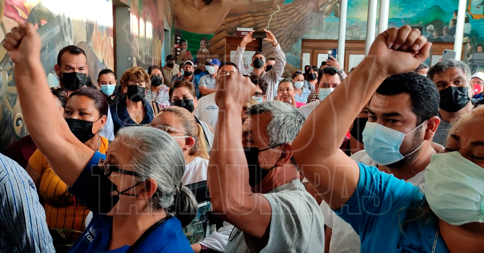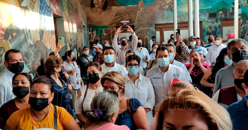 Durante la celebración de la 19 sesión ordinaria de Cabildo miembros del Sindicato de Trabajadores se manifestaron en las instalaciones de la Presidencia Municipal para exigir se respeten los logros que han obtenido a través del contrato colectivo, y que a cinco meses de la nueva administración, sigue sin firmarse.