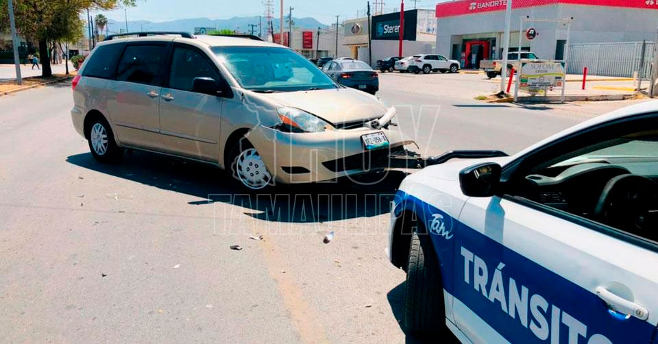Pero por el Boulevard Tamaulipas circulaba de sur a norte la Van Volkswagen con preferencia de paso y terminó impactando a la camioneta Toyota que se le atravesó y le cerró el paso.