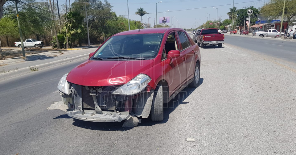 Los hechos se registraron cuando un vehículo tipo Tida que salía del ejido Benito Juárez pretendía tomar un retorno, pero no calculó bien y terminó impactando a una camioneta Ford Ranger que se desplazaba de sur a norte.