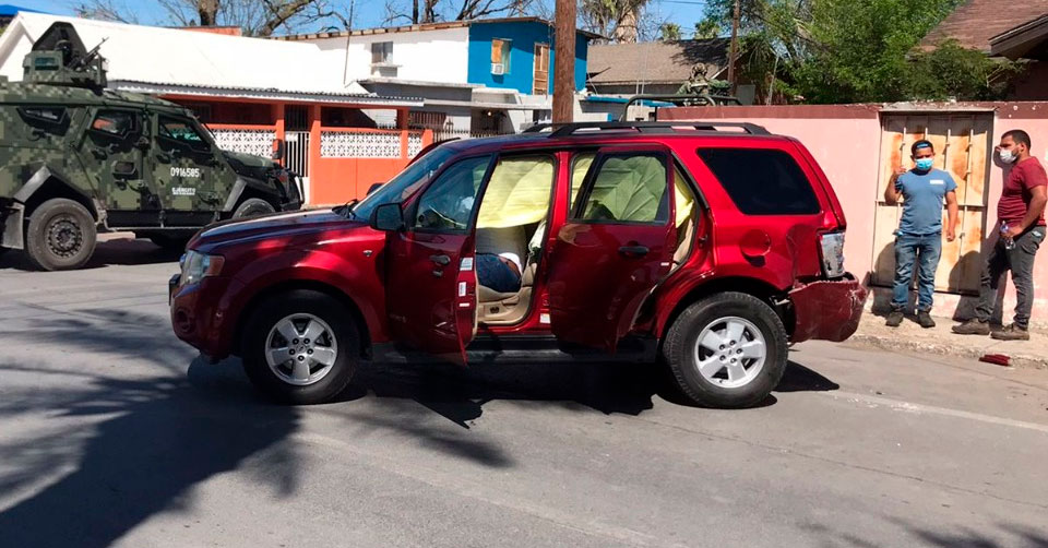 Nuevo Laredo, Tamaulipas. — Los accidentes vehiculares provocados por elementos del Ejército Mexicano no cesan en Nuevo Laredo y ahora provocaron un percance en un crucero de la colonia Juárez, en el que hubo daños materiales cuantiosos.