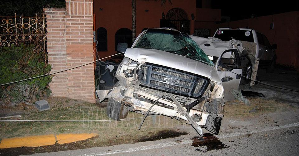Al llegar a la cuadra 1600, perdió el control y se fue directo contra el poste de la CFE ubicado en la banqueta, y luego contra las camionetas estacionadas en la cochera de un domicilio.