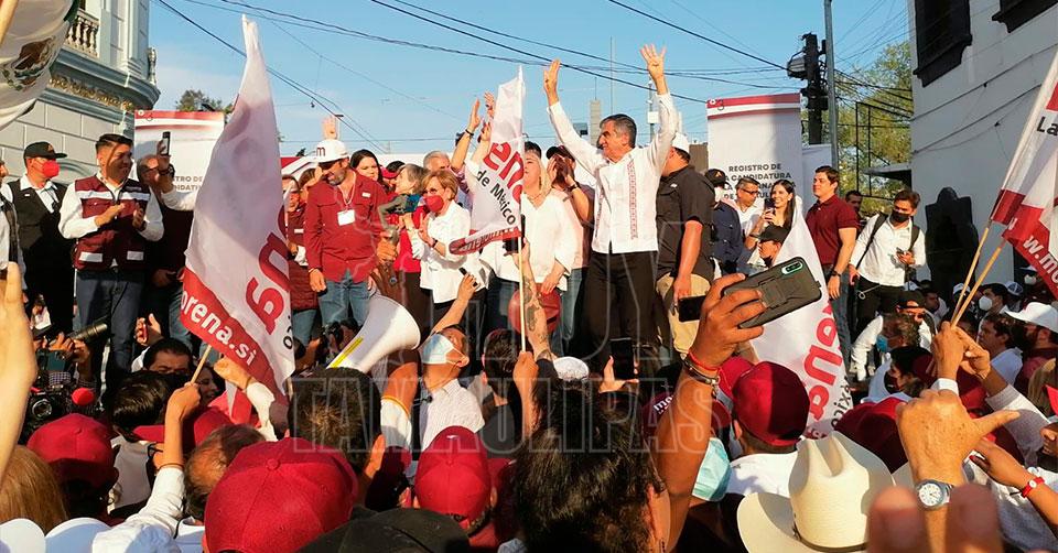 La pasión desbordada era demasiada, la ola guinda de Morena inundó la ciudad, miles y miles de personas acudieron al llamado, claro, también hubo miles y miles de acarreados que hicieron grande la comitiva de Morena.