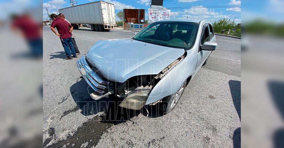 Matamoros, Tamaulipas.- Un joven obrero que tripulaba un Honda, Civic, sobre la carretera Sendero Nacional, en el entronque con la avenida 12 de Marzo, provocó un fuerte accidente; donde se vio como afectada una madre de familia que viajaba con sus hijos menores de edad.