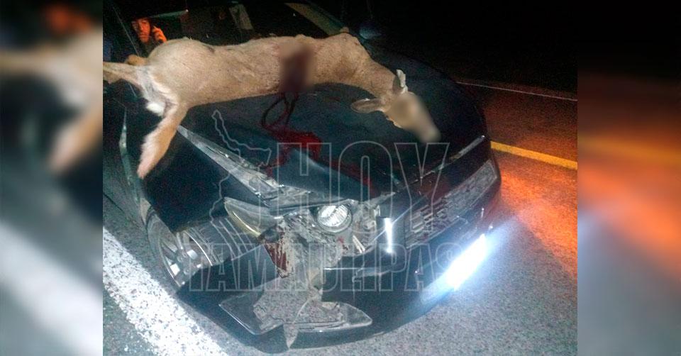 Villa de Casas, Tamaulipas. – Un venado se le atravesó al conductor de un automóvil durante la noche de ayer y provocó un accidente carretero, en el tramo Villa de Casas-Victoria, a la altura del Ejido Pobladores.