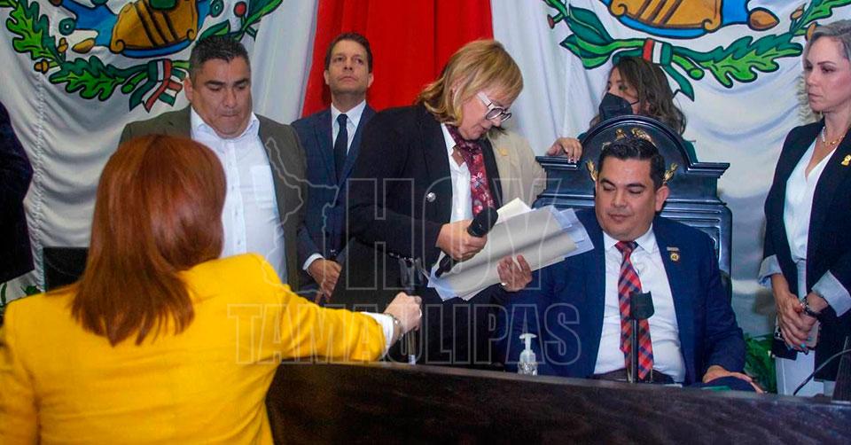 Ciudad Victoria, Tamaulipas.- Diputados de Morena generaron un nuevo enfrentamiento en el Congreso de Tamaulipas, cuando la diputada Magaly Deandar sustrajo documentos personales de la diputada panista, Imelda Sanmiguel.