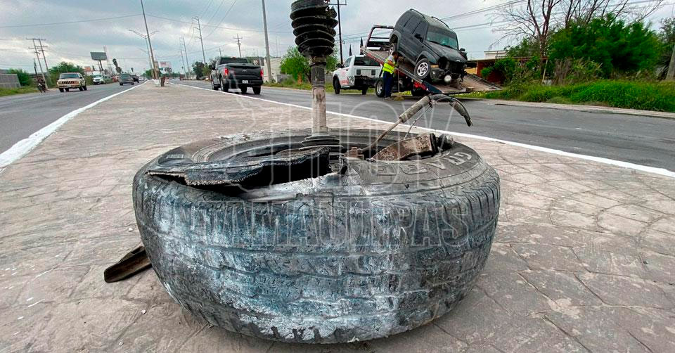 El aparatoso choque sucedió en la entrada a la colonia Esperanza, donde una Jeep Liberty se trepó al camellón central y se impactó contra un poste.