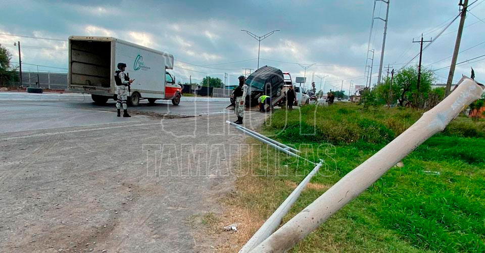 Matamoros, Tamaulipas. - Un fuerte accidente vial ocurrió en la carretera Matamoros-Reynosa y dejó como saldo dos personas lesionadas que fueron hospitalizadas de emergencia en el Hospital General “Dr. Alfredo Pumarejo”.
