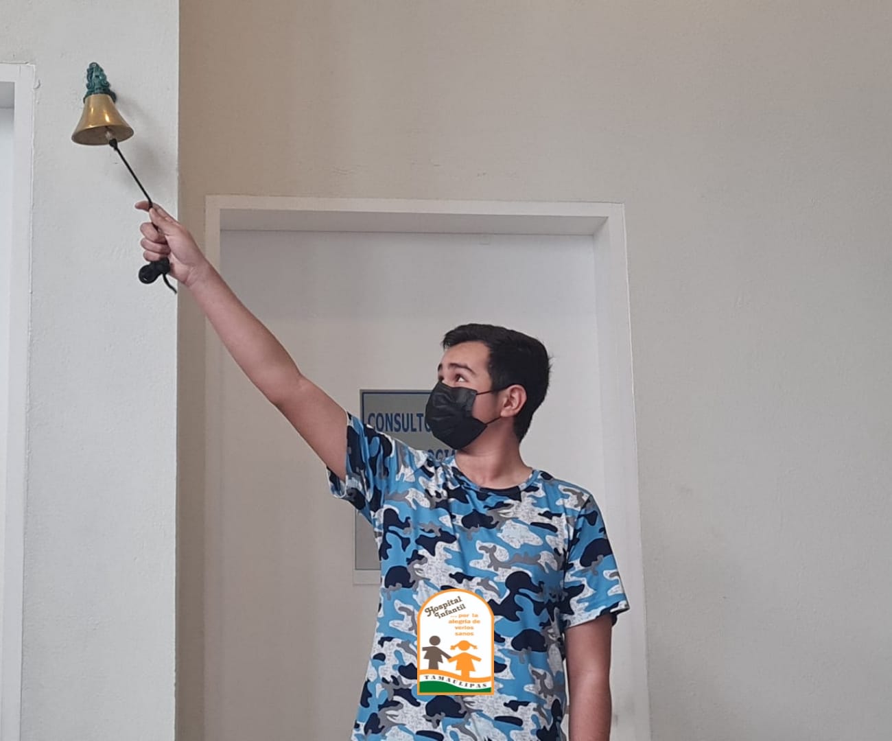 Ciudad Victoria, Tamaulipas.- La campaña de la victoria fue tocada una vez más en Ciudad Victoria, en esta ocasión fue un menor de 14 años, quien afortunadamente venció al cáncer y lo celebró junto a médicos y sus familiares en el Hospital Infantil de esta ciudad Capital.