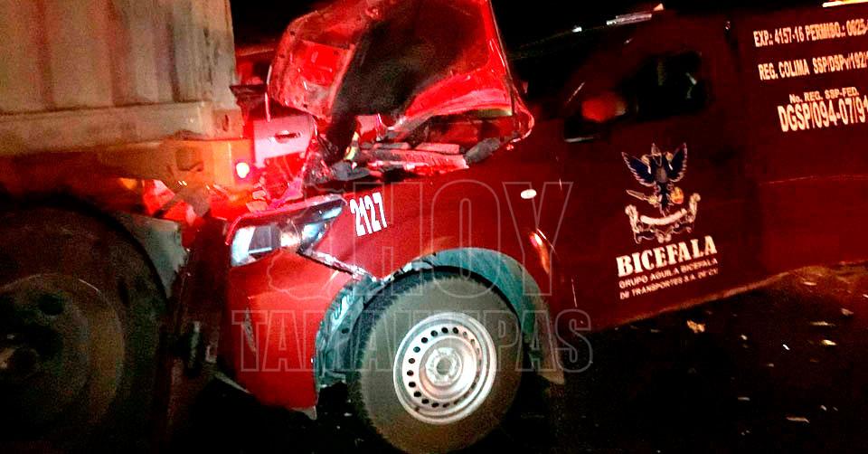 Se trató de una camioneta de valores que se impactó en la parte trasera de un camión de volteo que hacía alto en la fila de norte a sur.