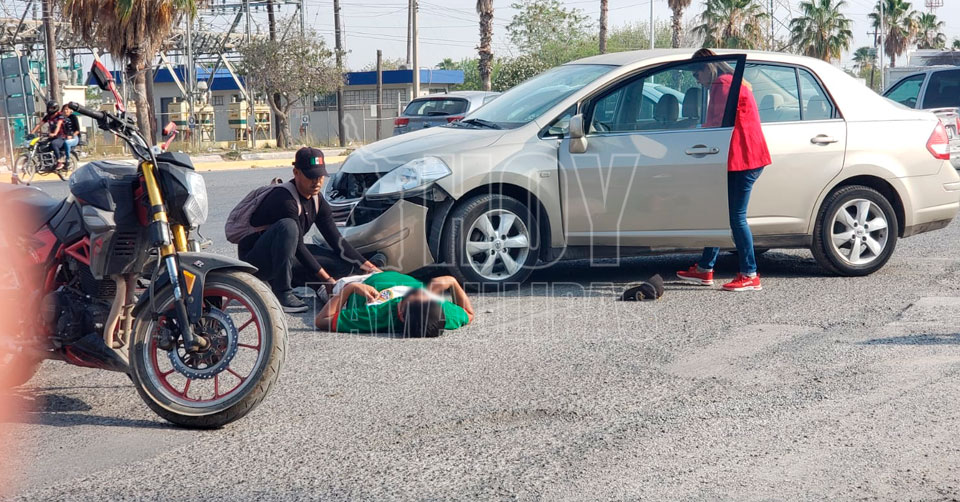 La presunta responsable conducía un vehículo Nissan Tiida en dirección de oriente a poniente por la calle Artículo 32, pero al llegar a la lateral de la Avenida José Sulaimán impactó al motociclista.