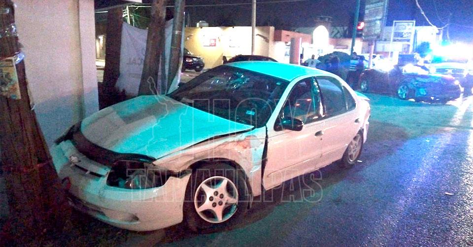 Del impacto, el Chevolet Cavalier giró sobre su eje y chocó contra un poste de madera.