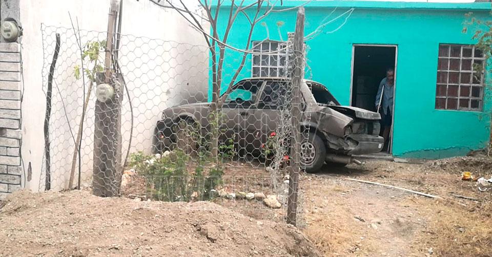 Fue en la calle Ciruela y Turquesa de la colonia Marte R. Gómez, a donde acudieron elementos de Tránsito municipal, ante el reporte de que un coche se había metido al patio de su casa, derribando la malla ciclónica.