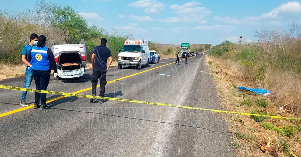 Villa de Casas, Tamaulipas.- Un hombre de 27 años de edad perdió la vida trágicamente esta tarde al volcar el vehículo que tripulaba junto a su familia, en el kilómetro 10 de la carretera Villa de Casas-Soto la Marina.