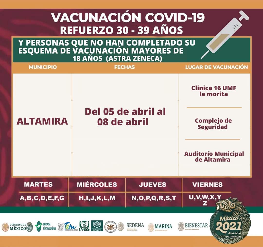 Seguirá la aplicación de refuerzos para prevenir el Coronavirus en Altamira