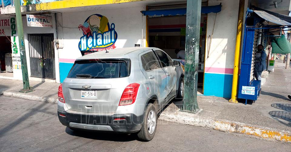 Tampico, Tamaulipas. – El conductor de una camioneta perdió el control al volante tras un accidente vial, y estuvo a punto de meterse a un negocio de helados esta tarde, en la zona centro de Tampico.