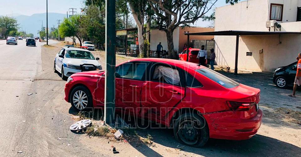 Ciudad Victoria, Tamaulipas.- Dos personas resultaron lesionadas luego de participar en un aparatoso choque cuando se desplazaban sobre la Avenida de la Unidad, frente al Fraccionamiento Las Palomas de Ciudad Victoria.