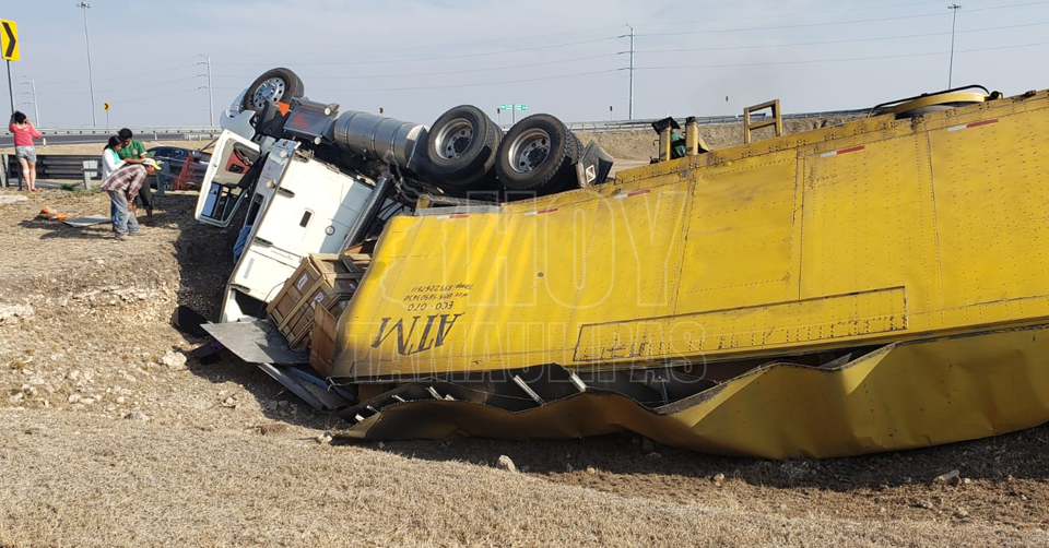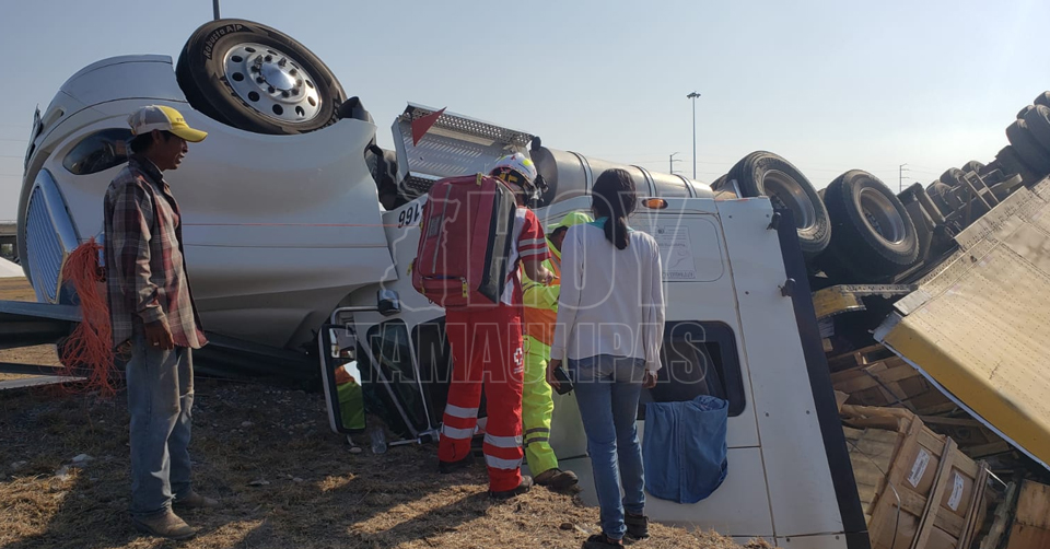 Vuelca tráiler y chofer queda prensado en la carretera Victoria-Soto La Marina