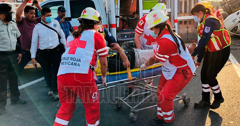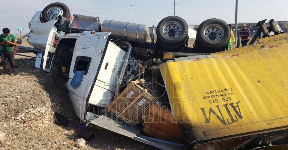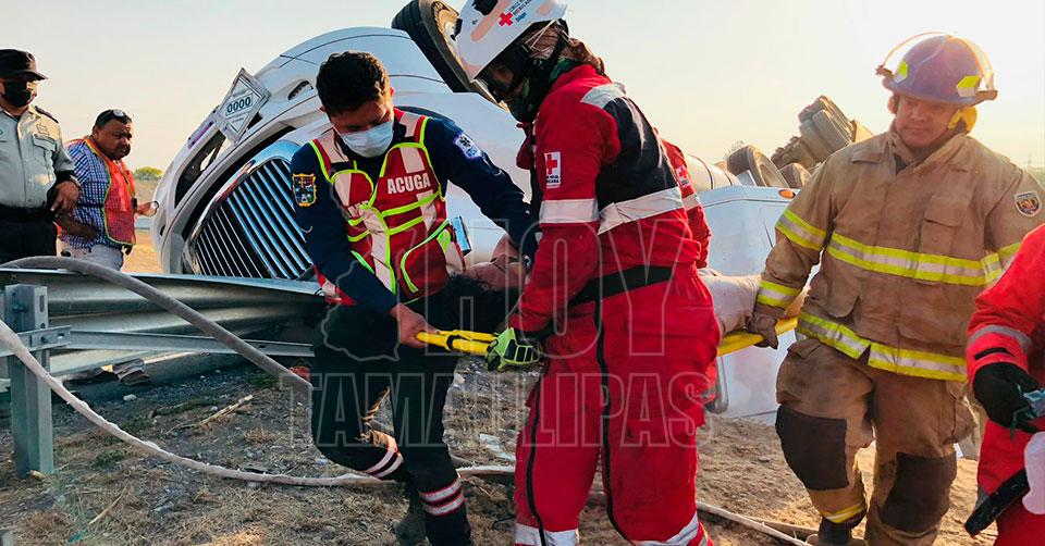 Liberan a chofer de tráiler que quedó prensado al volcar en la Victoria-Soto la Marina