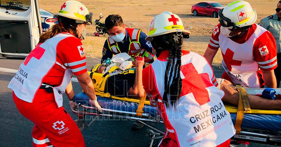 llos Cruz Roja y Protección Civil se logró liberar de entre los hierros retorcidos al chofer de un tráiler que quedó prensado luego de volcar la unidad.