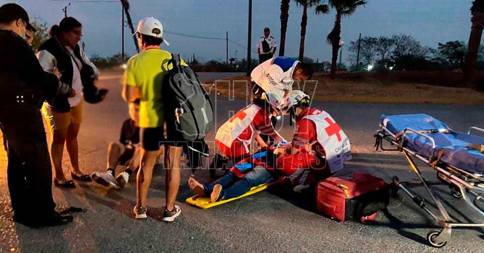 Ciudad Victoria, Tamaulipas. – Una madre de familia y su menor hijo resultaron lesionados esta mañana al ser derribados de la motoneta en la que se desplazaban por la conductora de un automóvil en Ciudad Victoria.