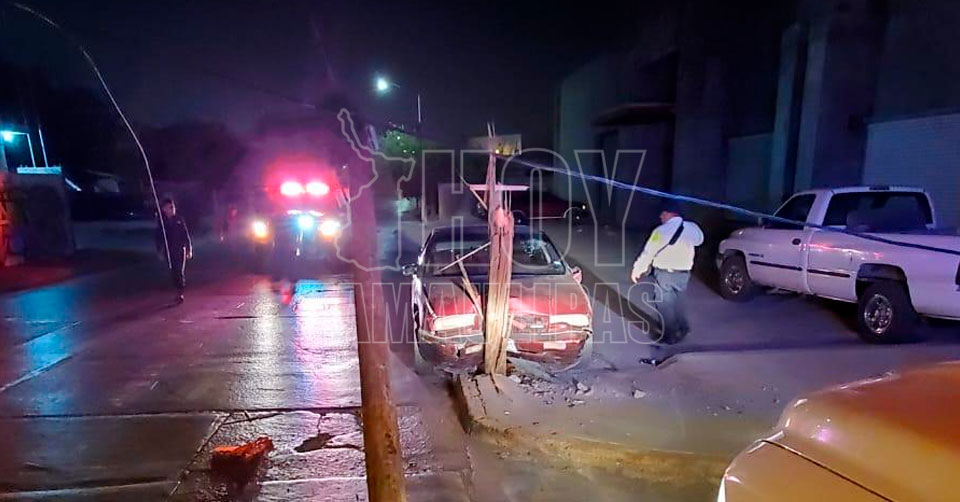 Al llegar a la avenida Reynaldo Garza, perdió el control del volante y se impactó contra el poste de madera de Telmex y lo partió en dos.