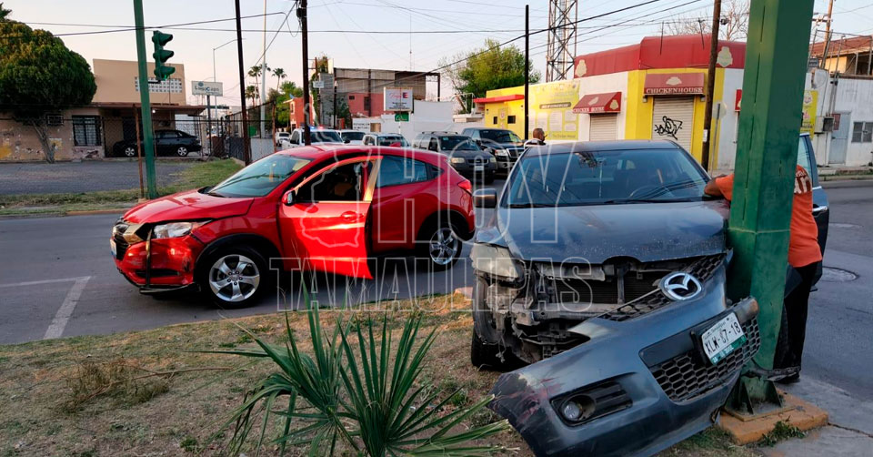 Lo encandila el sol, se pasa el rojo y causa choque en Nuevo Laredo