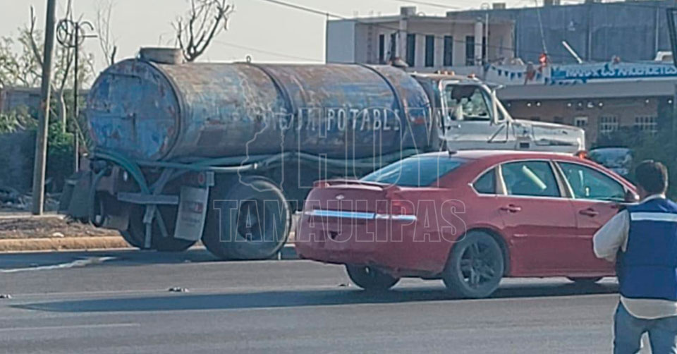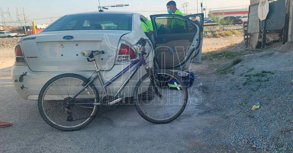 Ciclista choca con señalamiento y rebota con pipa en Nuevo Laredo