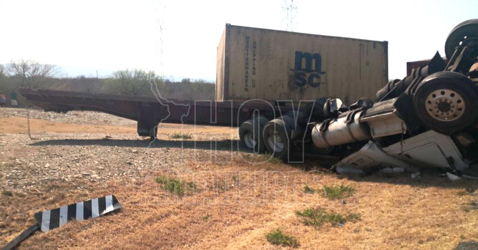 Se salva de morir trailero luego de volcar en la Tampico – Monterrey