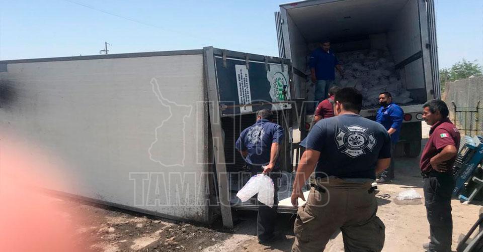Vuelca camión cargado de hielo en Matamoros; un lesionado