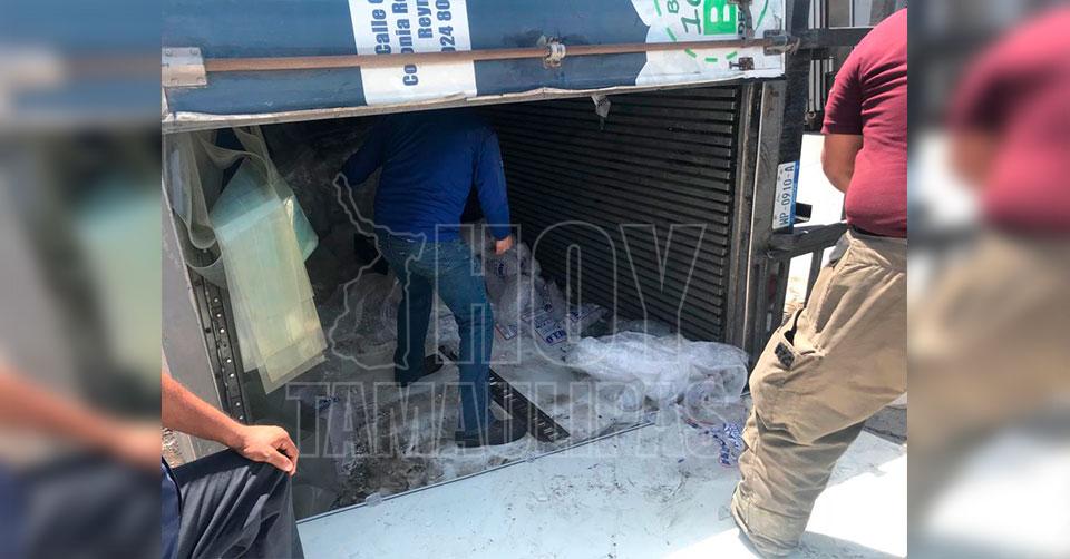 La unidad iba cargada de una gran cantidad de bolsas con hielo, mismas que fueron traspasadas a otro camión.