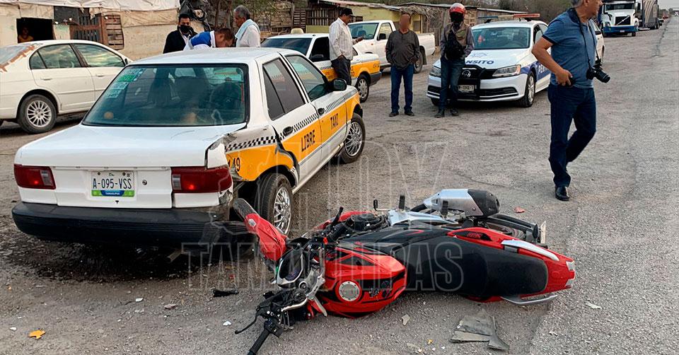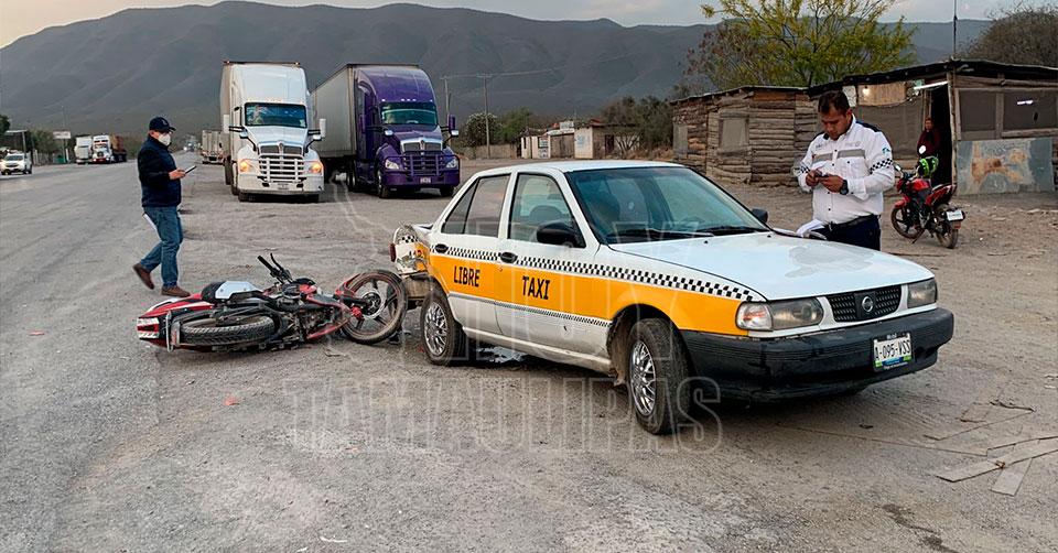Motociclista se "ensarta" contra taxi en la Victoria-Jaumave; no hay lesionados