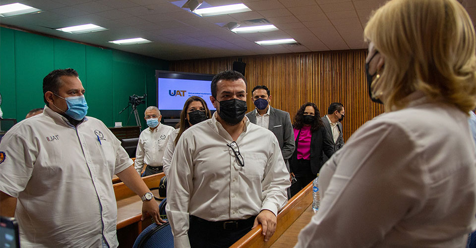 Durante la ceremonia se contó con la presencia del Dr. Eduardo Arvizu Sánchez, Secretario General de la Universidad; el Ing. Rafael Pichardo Torres, Secretario de Administración; y Oscar Valdez Ávila, Secretario General del SUTUAT; así como directivos y personal de las facultades y unidades académicas.