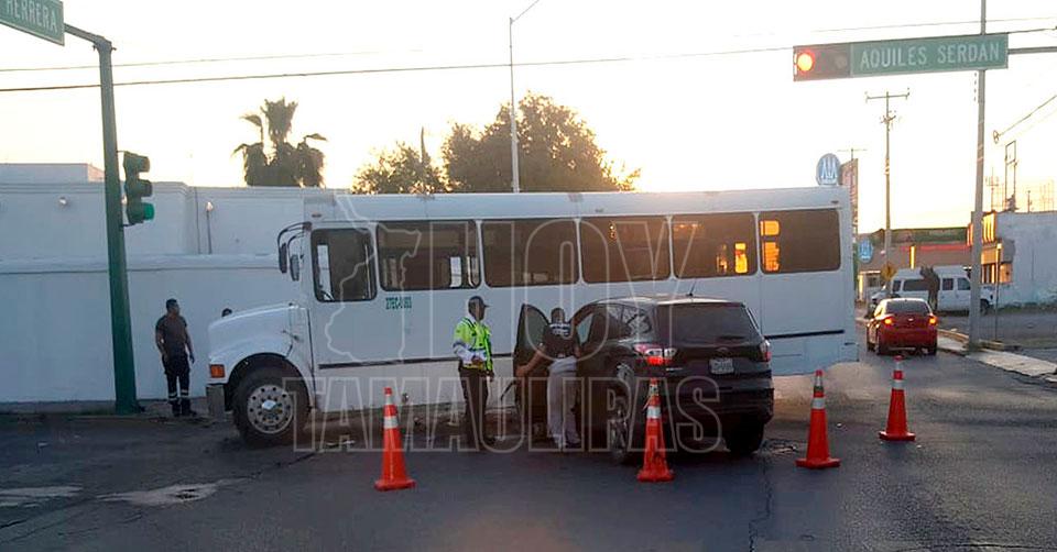 Nuevo Laredo, Tamaulipas.- Daños materiales cuantiosos fue el saldo que dejó un accidente vial entre una camioneta y un camión de pasajeros ocurrido en calles del sector Centro de Nuevo Laredo.