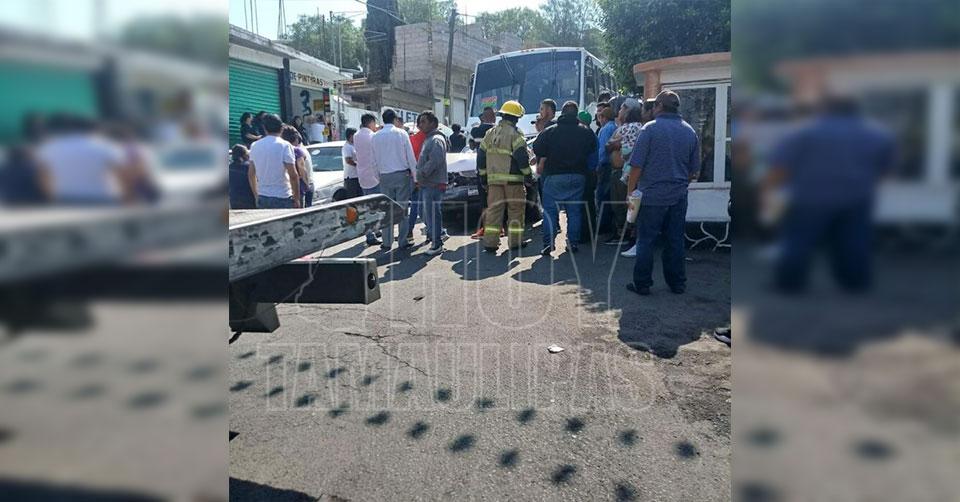Al ver que se les venía encima el autobús, los chóferes alcanzaron a salir de sus autos, sin embargo, estos quedaron severamente dañados.