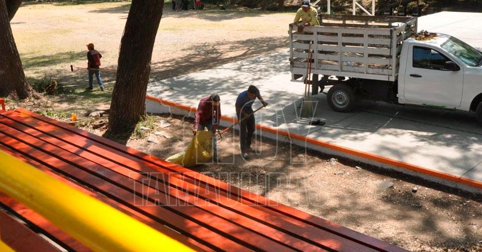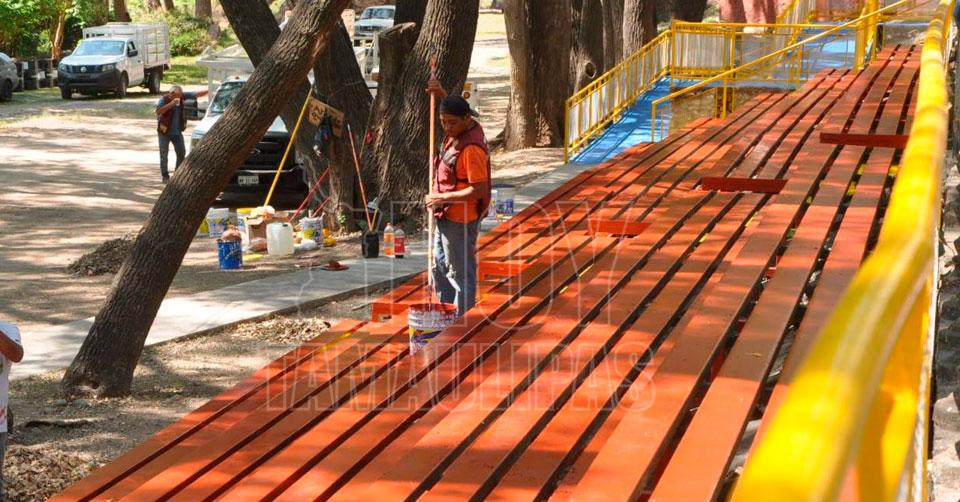 Los empleados municipales se encargaron de limpiar el lugar y pintar las gradas para recibir a los asistentes.