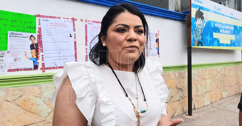 Salazar Mojica fue entrevistada luego de acudir a un módulo de votación instalado en la Escuela Primaria 5 de Mayo, ubicada en la colonia Americana, donde emitió su sufragio en el marco de la Revocación de Mandato.