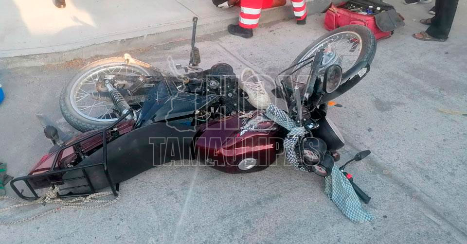 Ciudad Victoria, Tamaulipas. - Un joven motociclista y repartidor de tortillas resultó fracturado de una pierna esta mañana, luego de ser derribado por el conductor de una camioneta que argumentó ser encandilado por el sol y no lo vio.