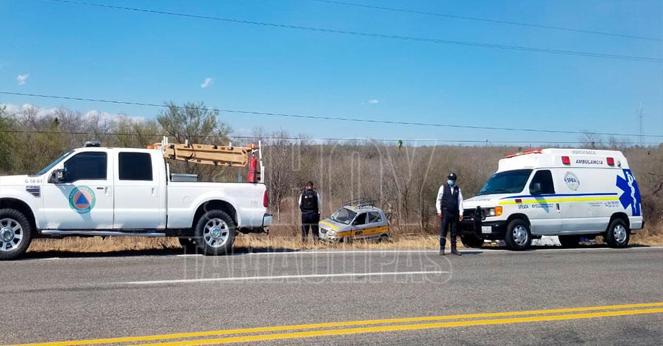 Conductor se sale de la carretera y casi vuelca en Jiménez, Tamaulipas