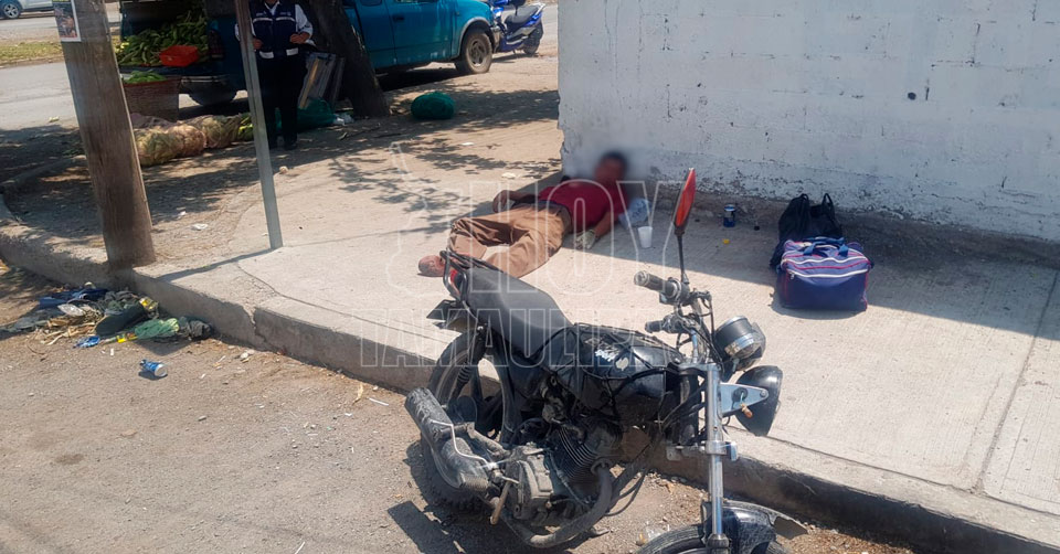 Según las versiones de los hombres que lo acompañaban, el hombre tirado intentó subirse a la motocicleta, pero perdió el equilibrio y terminó cayendo sobre la banqueta.