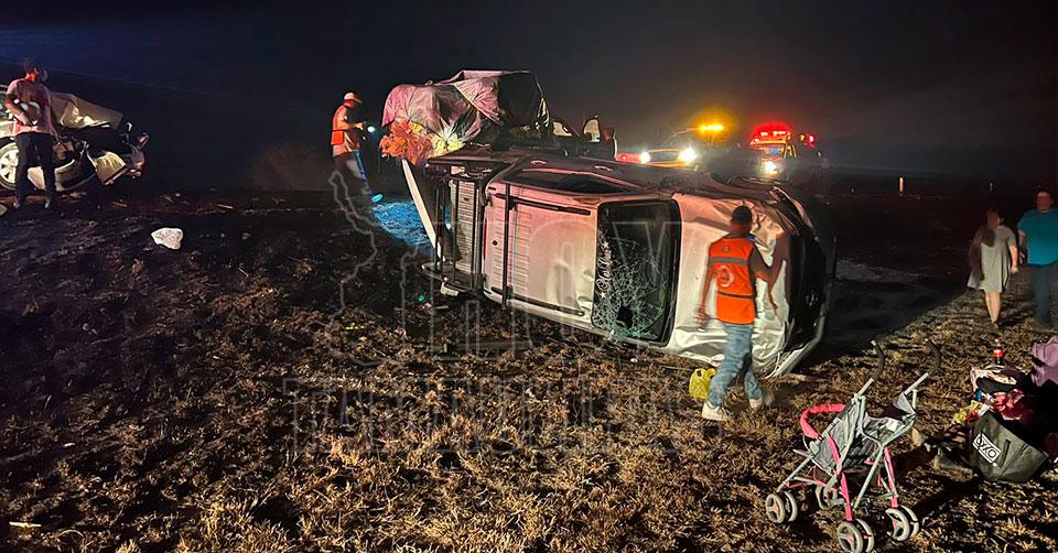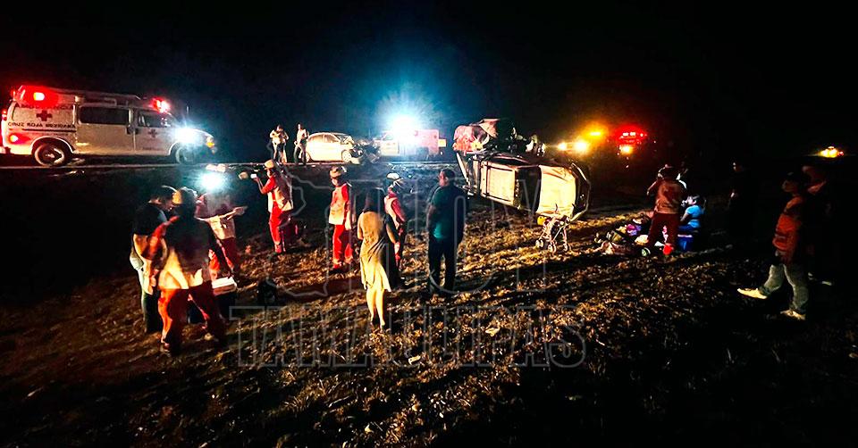 Ciudad Victoria, Tamaulipas.- Un choque múltiple registrado anoche entre tres vehículos en el kilómetro 27 de la carretera Zaragoza-Victoria, dejó como saldo nueve personas lesionadas.