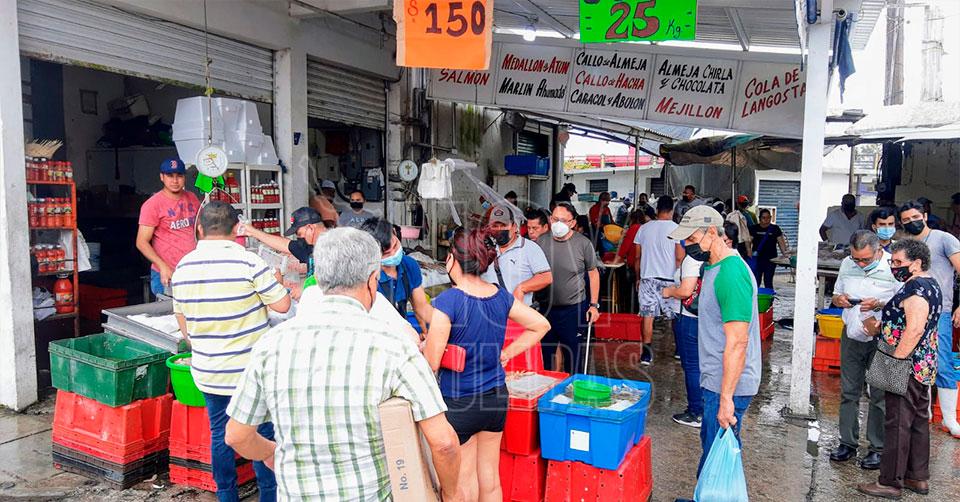 "Todavía no alcanzamos el 100 (por ciento de ventas), a ver si mañana, es el día más fuerte, unos productos sí incrementaron, los básicos, el filete, la mojarra, pero lo que más se ha incrementado es el robalo, pulpa de jaiba y camarón, sus precios andan arriba, como la pulpa de jaiba que tiene como cinco meses arriba, aumentó como un 60 a un 70 por ciento, el robalo un 30 a un 40%, la pulpa de jaiba anda oscilando entre 350, 360 (pesos), y el robalo estaba en 160, ahorita anda en 180 y 200", precisó.