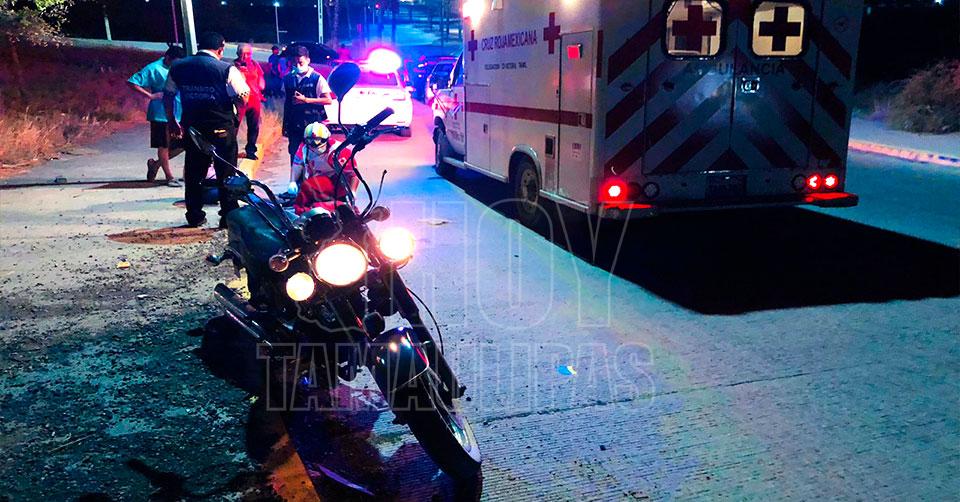 Ciudad Victoria, Tamaulipas. - Un motociclista resultó lesionado anoche luego de estrellarse contra un vehículo que había derribado una luminaria en el libramiento Naciones Unidas y entrada al Fraccionamiento Todos por Tamaulipas en Ciudad Victoria.