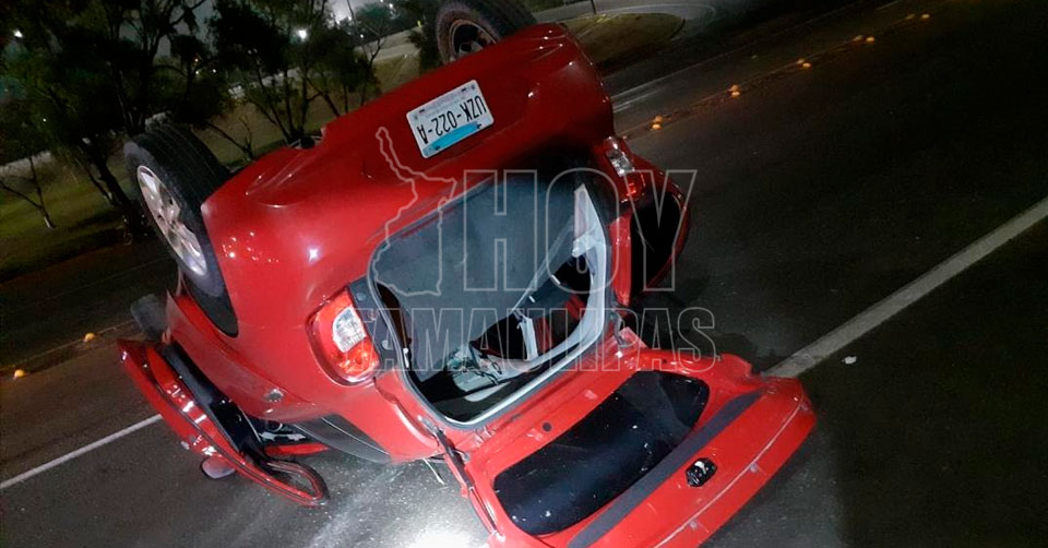 Se informó que al desplazarse con evidente exceso de velocidad, la mujer se impactó con el barandal y soportes metálicos propiedad del gobierno de Altamira, para terminar volcando el vehículo.