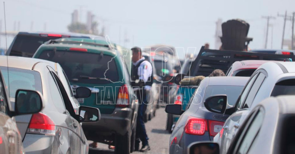 Matamoros, Tamaulipas.- Filas de más de 4 kilómetros de autos se pueden observar en la carretera que conduce a la Playa Bagdad para poder ingresar al balneario municipal.