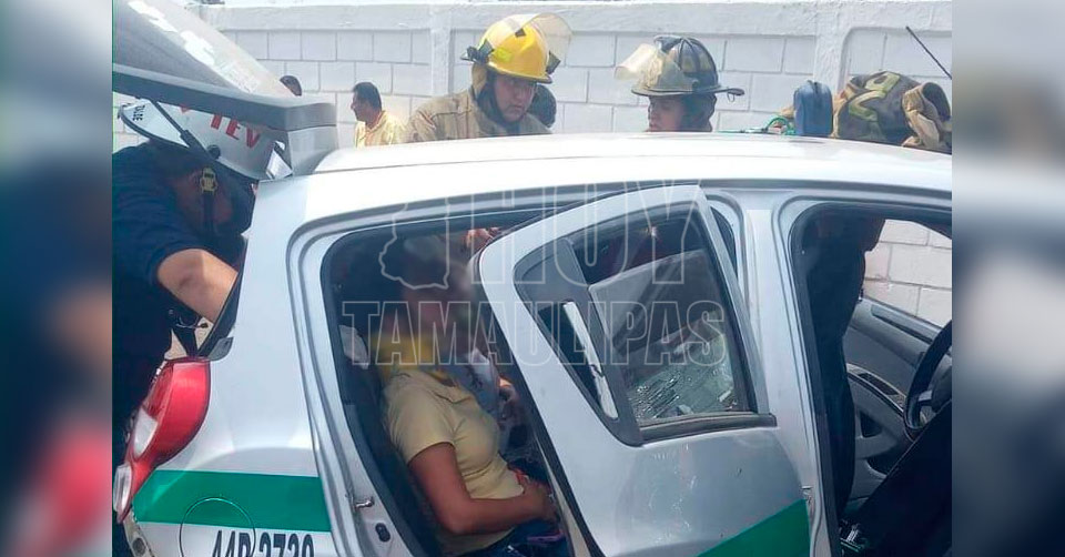 Pasajeros quedan prensados tras choque de taxi en Altamira