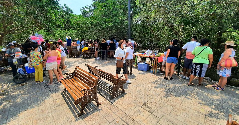 En el lugar decenas de personas se arremolinaban para tomarse una fotografía con los cocodrilos o iguana, además de que arribó al sector del Mirador de Cocodrilos gran cantidad de vendedores de agua, paletas, refrescos, lechuga para las iguanas y de recuerdos justamente por la notable afluencia turística, sin que hubiera algún problema por esta causa.