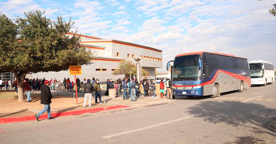 Desde el Centro Cultural los jóvenes son llevados a Laredo, Texas, donde es aplicada la vacuna contra el Covid-19.