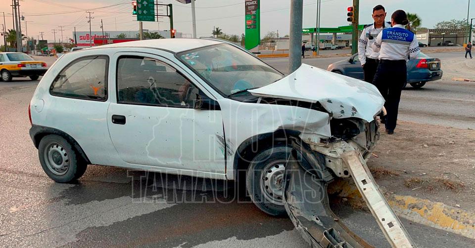 Se pasa la luz amarilla y provoca choque en crucero de Victoria