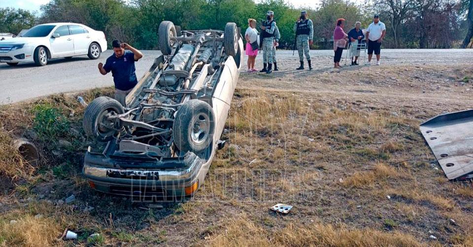 Mante, Tamaulipas. – Una pareja de adultos resultó ilesa luego de volcar la camioneta en la que se desplazaban, sobre la carretera Mante-Victoria a la altura del Poblado 601 del municipio de Gómez Farías.